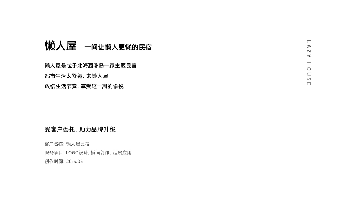 懶人屋 一間讓懶人更懶的民宿 懶人屋是位于北海潿洲島一家主題民宿 都市生活太緊繃,來懶人屋 放緩生活節奏,享受這一刻的愉悅 受客戶委托,助力品牌升級