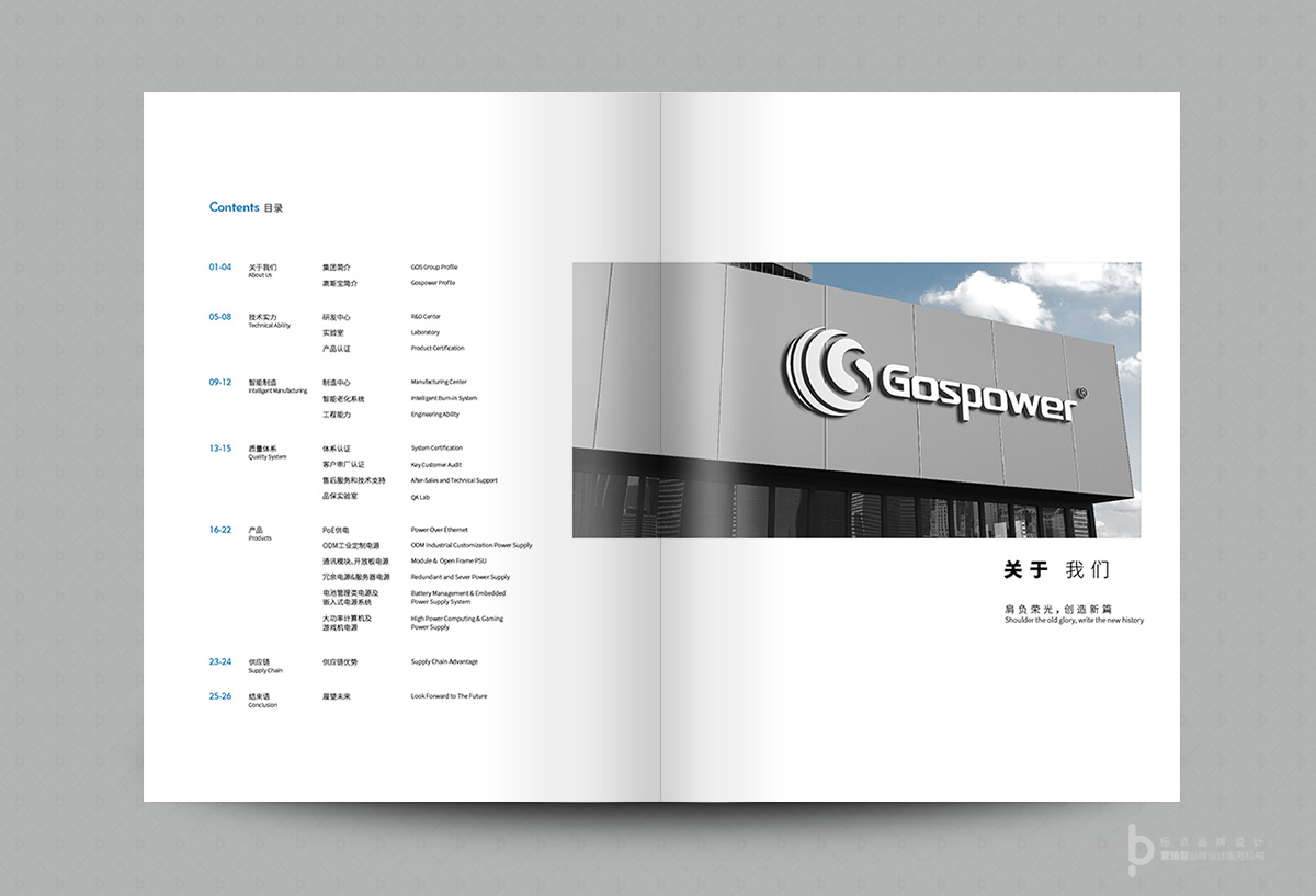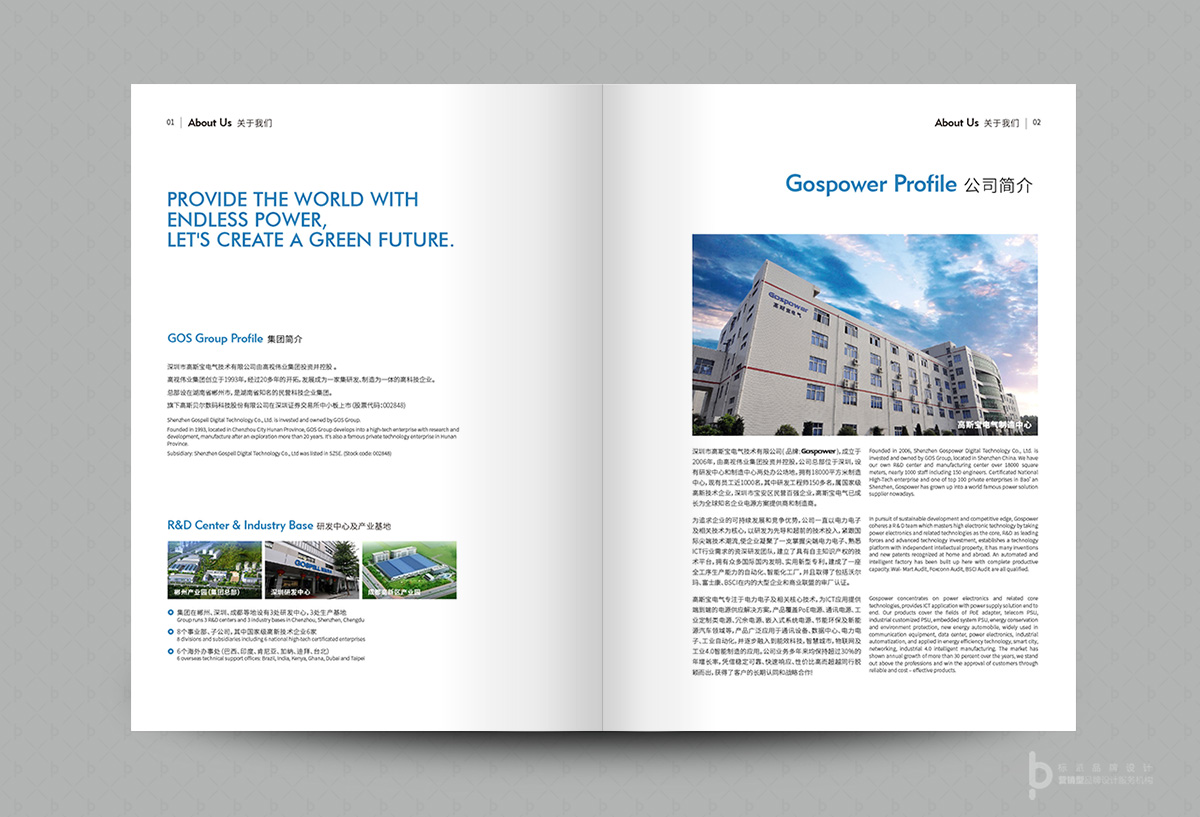 Gospower高斯寶品牌設計服務項目包括品牌logo設計,導視設計,品牌VI設計開,品牌畫冊設計,產品畫冊設計服務!高斯貝爾集團成立于1993年,集團在郴州,深圳,成都設有3個研發中心和3個產業基地。8個事業部和子公司,其中國家高新技術認定企業6家,6個海外技術支持辦事處:巴西,印度,肯尼亞,加納,迪拜,臺北。