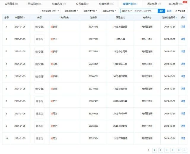 企查查App顯示,近期,華為技術有限公司成功注冊姚思為、YAO SIWEI、ANNABEL YAO商標,商標國際分類涉服裝鞋帽、方便食品等。企查查顯示,華為目前也已經完成了姚安娜商標的注冊。據悉,姚安娜原名為姚思為,為華為創始人任正非的小女兒。 ANNABEL YAO為其英文名字。https://www.m.mcore.com.cn/